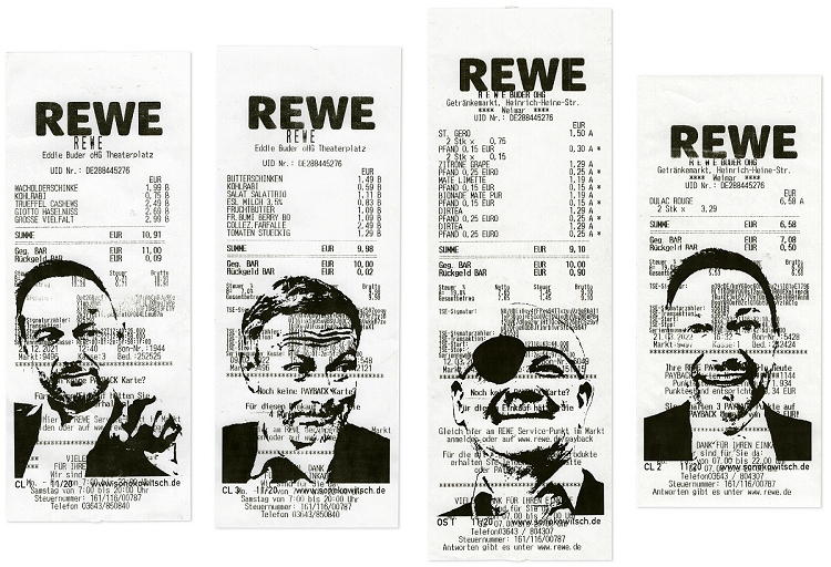 Projekt „Kunst auf Kredit“. Er bedruckte Kassenbons diverser Handelsketten